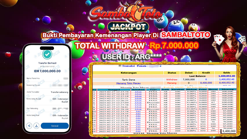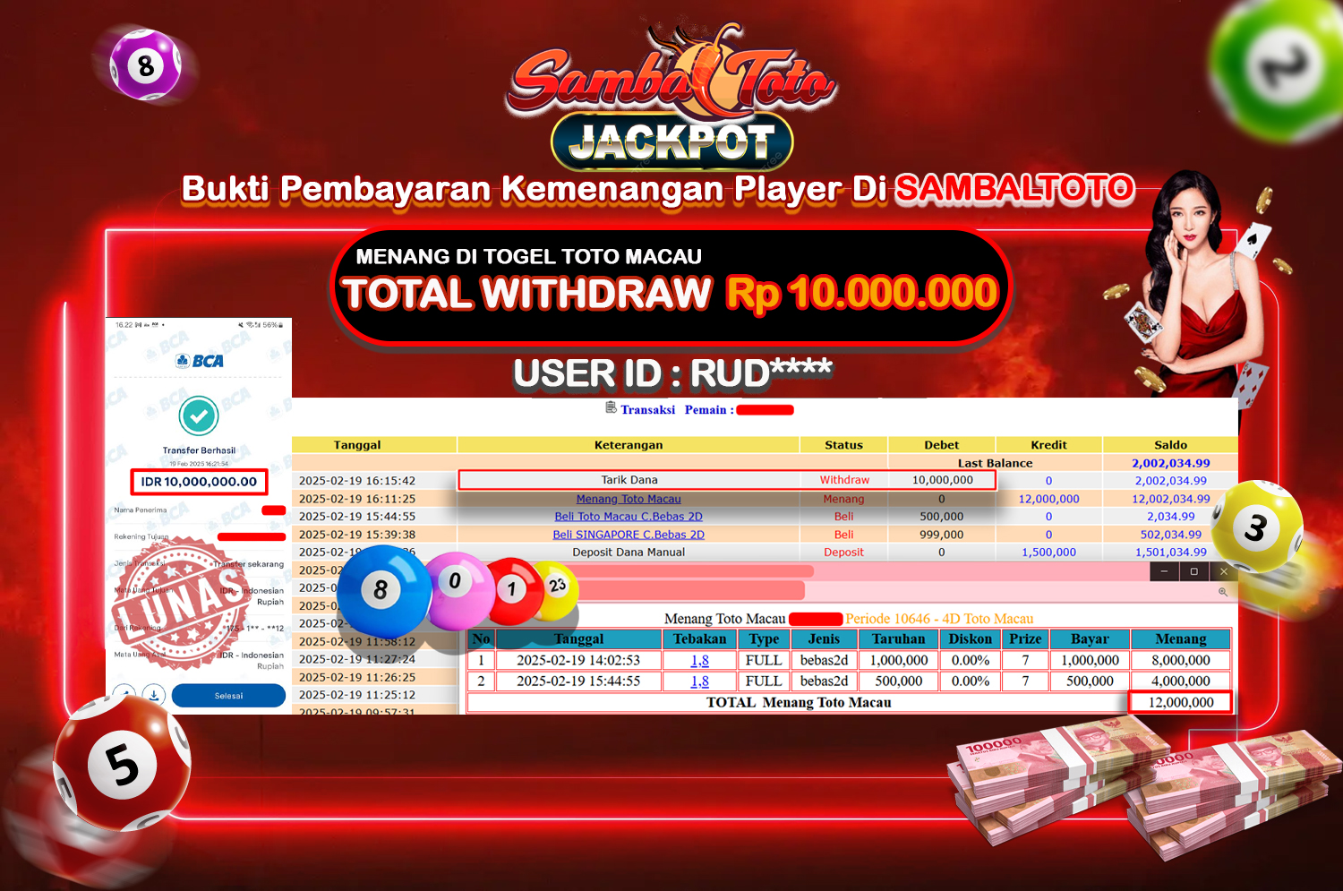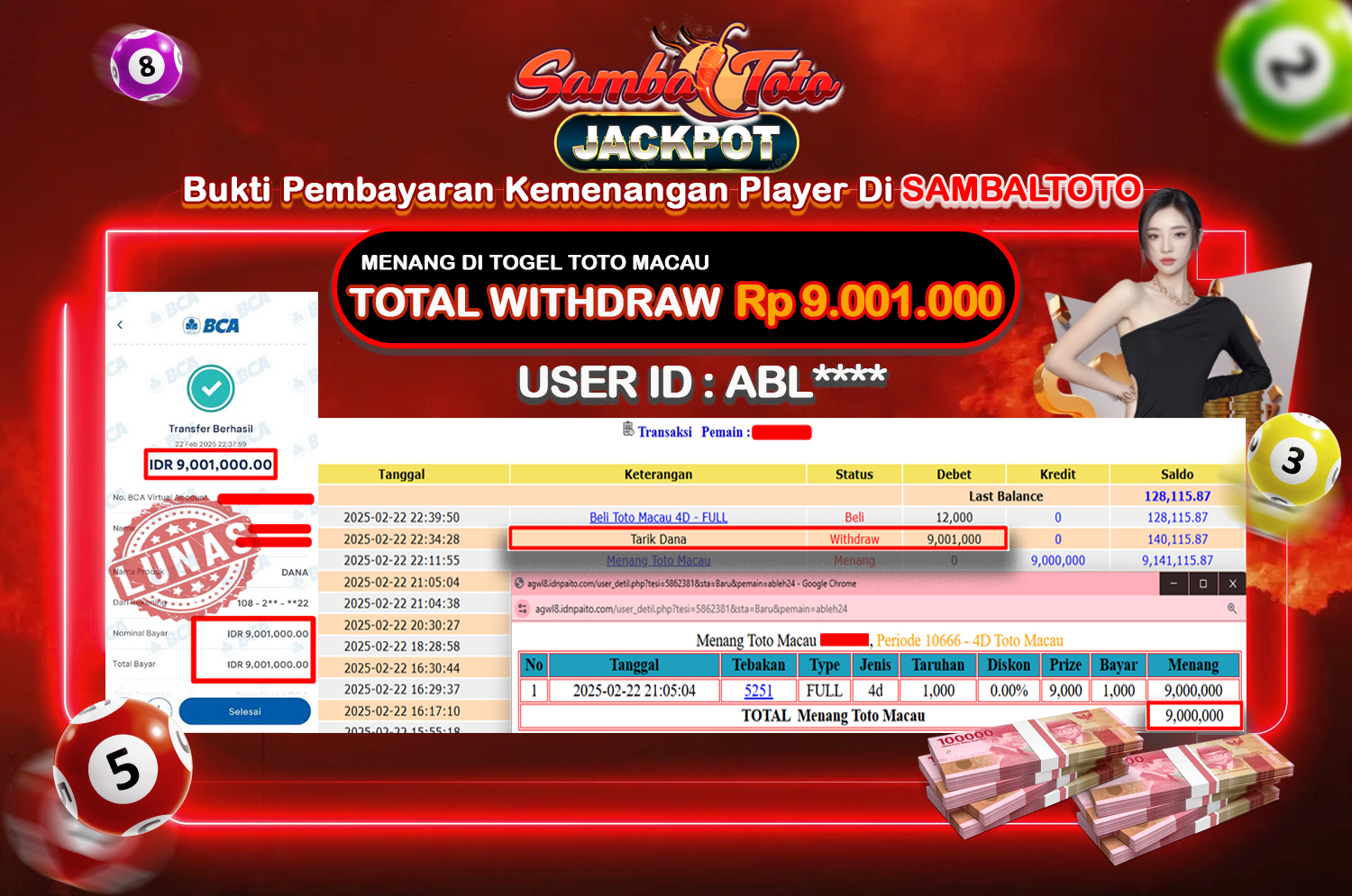 Kemenangan TOGEL 5D TOTO MACAU !!! Tunggu Apa Lagi Bosku ??!! Mari Bergabung Dengan Kami di SAMBAL TOTO dan Dapatkan Kemenangan anda sekarang juga ^^