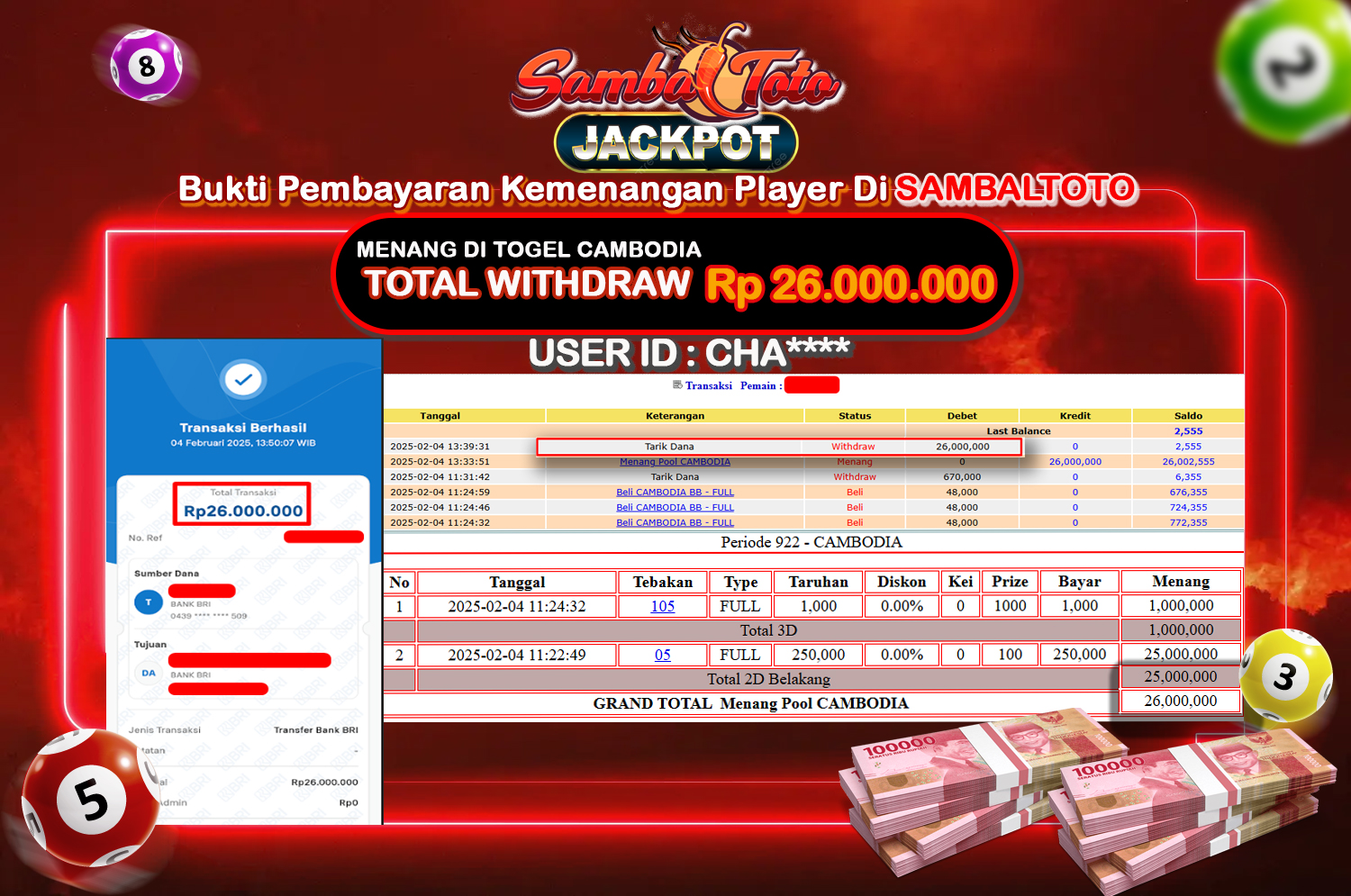 Kemenangan TOGEL CAMBODIA !!! Tunggu Apa Lagi Bosku ??!! Mari Bergabung Dengan Kami di SAMBAL TOTO dan Dapatkan Kemenangan anda sekarang juga ^^