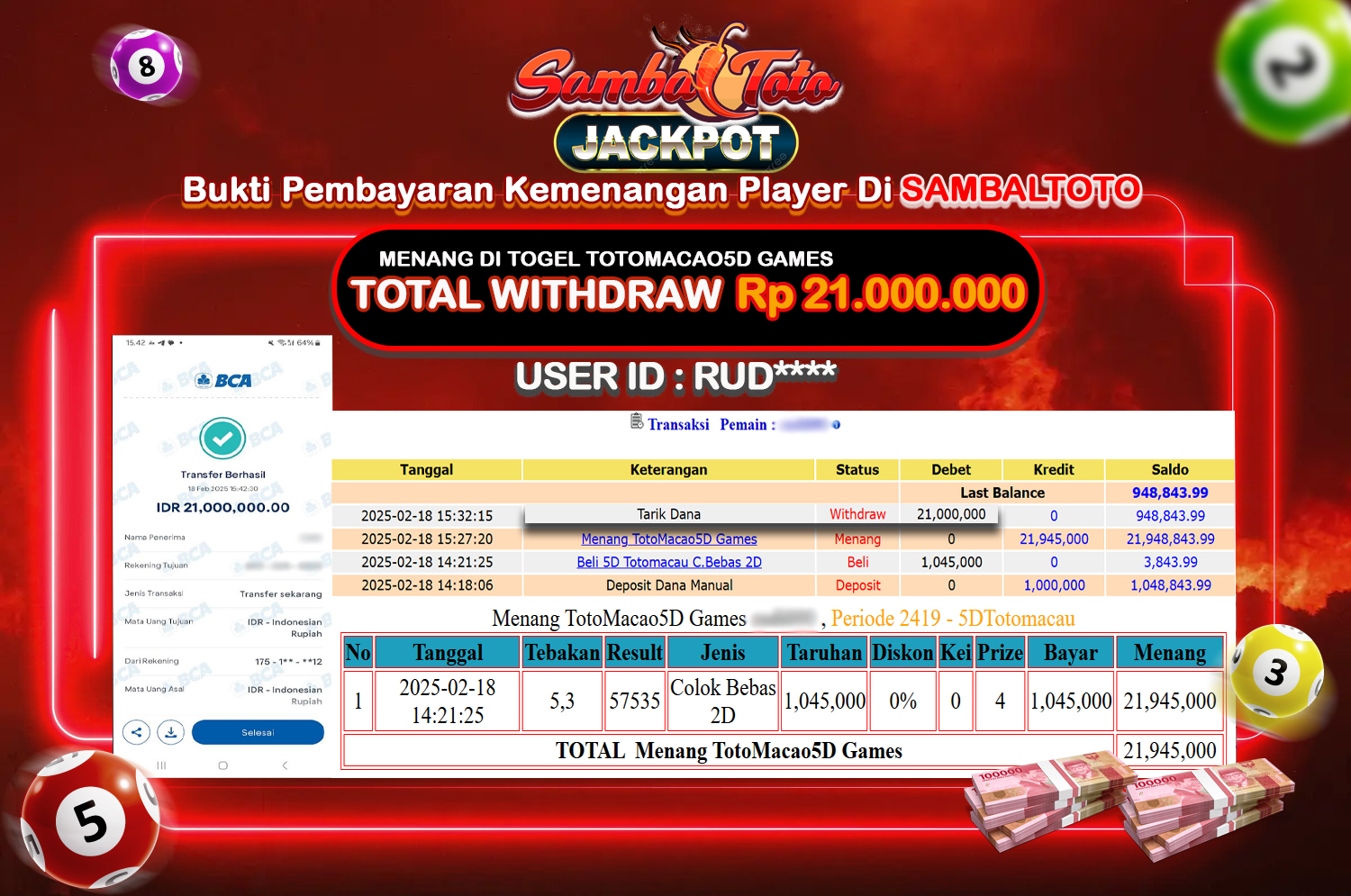 Kemenangan TOTOMACAO5D GAMES !!! Tunggu Apa Lagi Bosku ??!! Mari Bergabung Dengan Kami di SAMBAL TOTO dan Dapatkan Kemenangan anda sekarang juga ^^