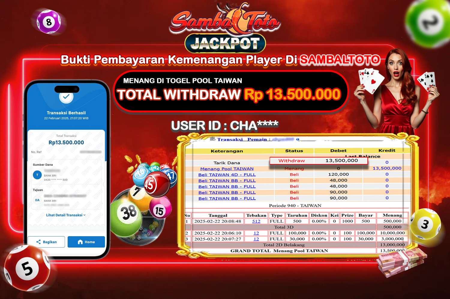Kemenangan TOGEL TAIWAN !!! Tunggu Apa Lagi Bosku ??!! Mari Bergabung Dengan Kami di SAMBAL TOTO dan Dapatkan Kemenangan anda sekarang juga ^^