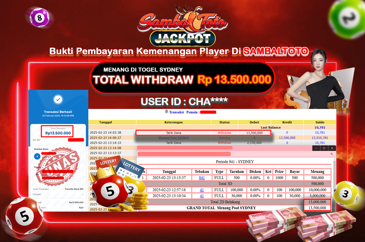 Kemenangan TOGEL SYDNEY !!! Tunggu Apa Lagi Bosku ??!! Mari Bergabung Dengan Kami di SAMBAL TOTO dan Dapatkan Kemenangan anda sekarang juga ^^